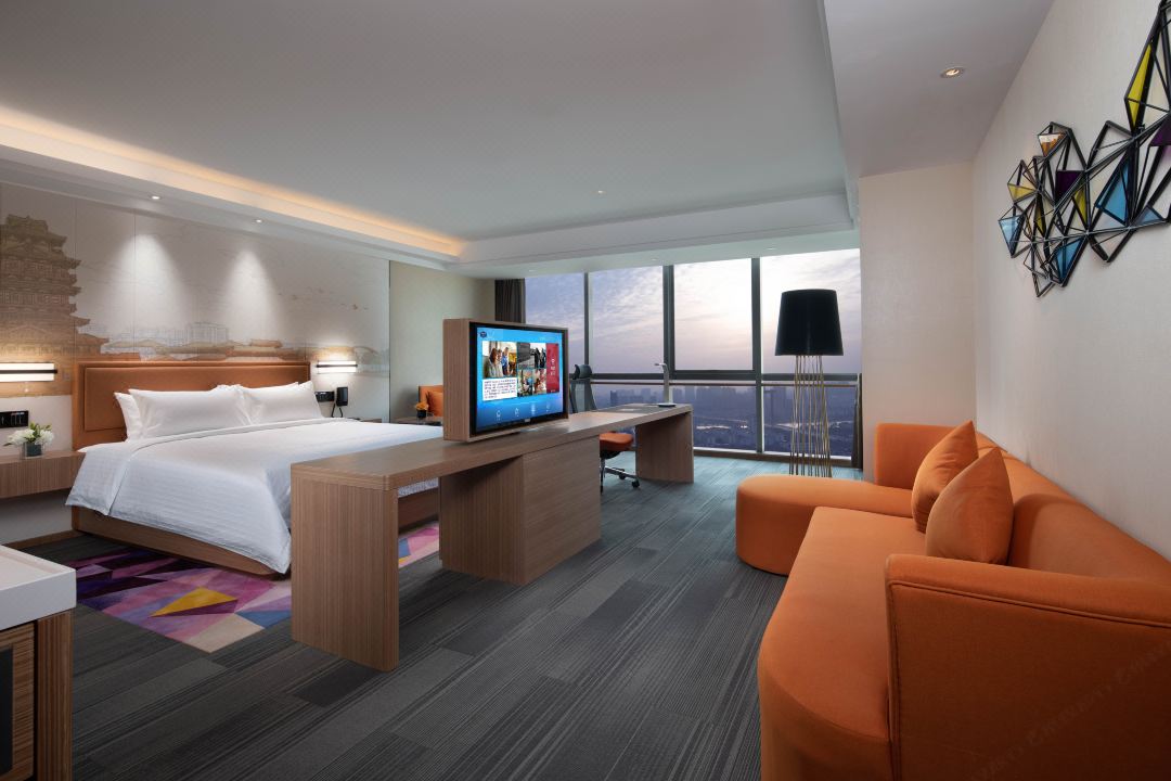 宿迁苏宁广场希尔顿欢朋酒店地处运河风光带,位于宿迁市中心核心商圈苏宁广场21-24楼,毗邻中央商场、宝龙城市广场和金鹰国际购物中心,地理位置优越,交通便利,距宿迁汽客运站仅10分钟车程,紧邻宿迁高铁东站,30分钟即可到达景区三台山森林公园,10分钟即可抵达项王故里景区。