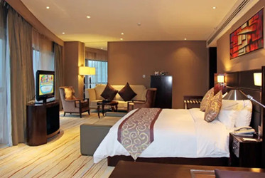 客房设施:空调、国内长途电话、国际长途电话、多种规格电源插座、小冰箱、雨伞