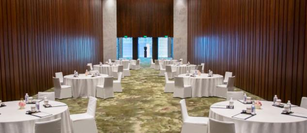 支持摆台: 剧院式布局:144 人,课桌式布局:120 人,宴会式布局:100 人,U型式布局:57 人,董事会式布局:48人, 酒会式布局:180人
