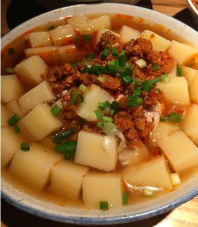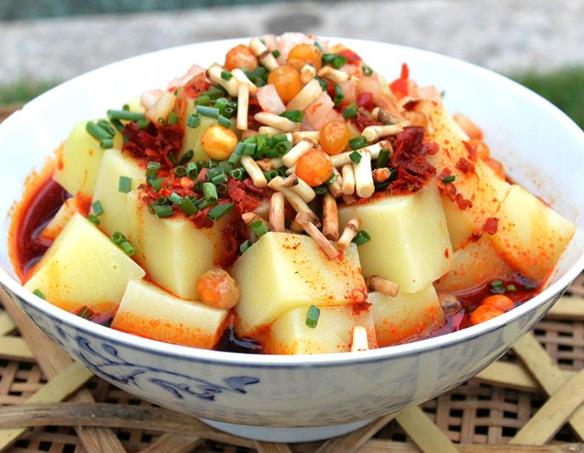 冷却后切成小方块拌以作料就成为酉阳特色美食,大人小孩喜爱有加。