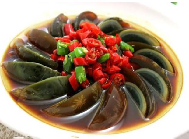 主要食用功效:松花蛋味辛、涩、甘、咸、性寒,入胃经;  解酒松花蛋