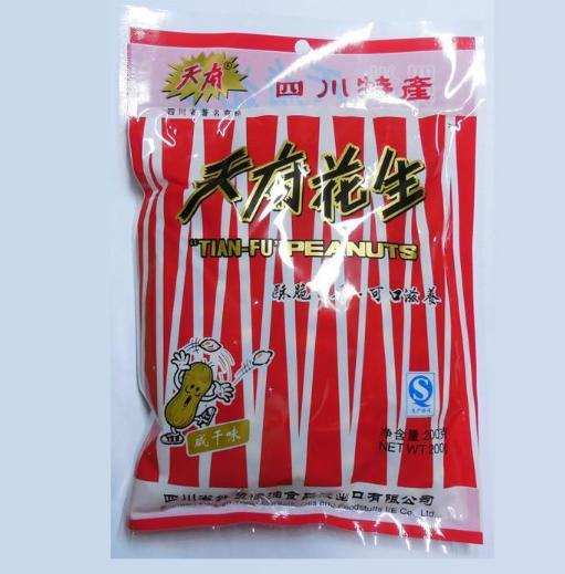 四川盆地花生产区(含四川省和重庆市)是我国花生主产区之一,年均种植面积450-500万亩、总产65万吨左右,是我国西部最大的花生产区。该区域花生以食用为主,注重风味品质和外观品质。在花生育种上,以选育适应性强、商品性好的中粒高产优质品种为主,育成的天府系列品种是加工咸味花生果和花生酥糖的主要原料品种。南充市农业科学院自1950年代开始花生育种以来,先后鉴定评选出了金堂深窝子和罗江鸡窝两个农家品种,系统选育成南充混选1号和天府13号,杂交选育成天府3号、天府4号、天府5号、天府7号、天府8号、天府9号、天府10号、天府14号、天府15号、天府18号、天府19号、天府20、天府21、天府23、天府24、天府25、天府26、天府27、天府28、天府29、天府30等品种,这些品种在生产上得到广泛应用,统称为天府花生,实际上为一个花生品种系列。天府花生以资阳、德阳、成都、南充、宜宾、绵阳等地所产的“天府花生”味道为佳。天府花生采用优质花生、天然香料和传统工艺,经过精心加工而成。其特点是颗粒均匀,外壳薄而光洁,果仁丰满,咸酥脆香。由于它历史悠久,五香俱全,营养丰富,风格独特,曾多次荣获同行业优秀质量奖,畅销省内外,对外出口东南亚各国。
