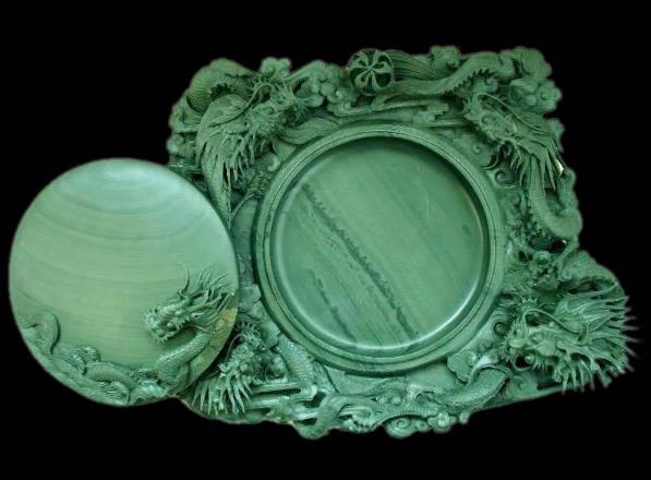 赵希鹄《洞天清禄集》: “除端、歙二石外,唯洮河绿石,北方最贵重。绿如蓝,润如玉,发墨不减端溪下岩。然石在大河深水之底,非人力所致,得之为无价之宝。”