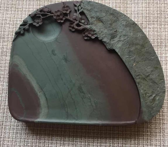 砚台的实用功能是磨墨,其中下墨、发墨是衡量砚材好坏的重要指标之一,简单说,下墨,是通过研磨,墨从墨块到水中“砚台上”的速度。发墨,是指墨中的碳分子和水分子融合的速度、细腻程度。发墨好的墨如油,在砚中生光发艳,随笔旋转流畅,所以画画的用砚比书法的用砚要求更高。下墨讲求快慢,发墨讲求粗细,但往往下墨快的发墨粗,发墨好的下墨慢。所以,下墨发墨均佳的砚极其珍贵。