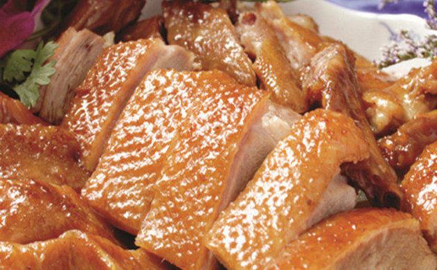 3.抹料腌制 把辅料粉碎混匀,涂抹在鹅体腔、口腔、创口和暴露的肌肉表面。然后平放在案板上或倒挂胯制3~4天,不能堆叠,以便保护羽毛。