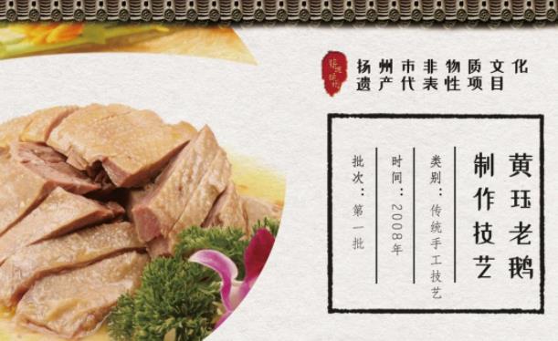 黄珏老鹅选用邵伯湖沿线水乡放养的白鹅。自清中期由张氏创立黄珏老鹅做法起已有百余年历史,选用本地放养的白鹅,以中药材和秘方配料,加水烧煮而成,成品形整似活,烂而不散,色泽金黄,肉质肥嫩,咸鲜味美,久食不厌。因清代地方官员曾经用黄珏老鹅招待过下江南时路过扬州的乾隆皇帝,而名扬天下。