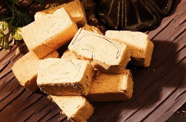 董糖每块长约3厘米、宽、厚各约1.5厘米,用糯米粉、芝麻、白糖、麦芽等原料,手工精制而成,拆开包装纸,米黄色的董糖便呈现在你的眼前。每块有48层软片组成,厚薄均匀,层次分明,口味纯正,入口酥软,味美香甜,老少皆宜。