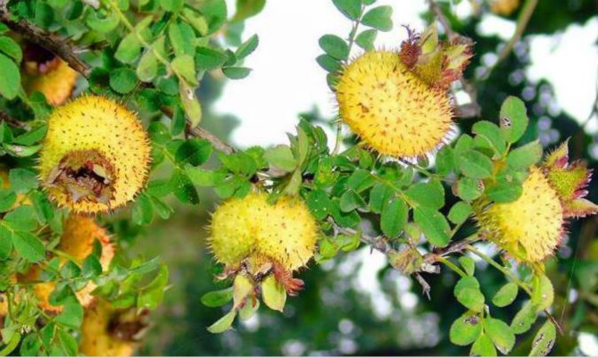 贵州山区的天然野果。 刺梨的收获期不足30天。果实内含有丰富的维生素C,每百克鲜果的可含部分一般含维生素C二千毫克,因此被称之为“维C之王”;单宁五百至一千毫克;含酸一至二克;总糖量一般四克左右。